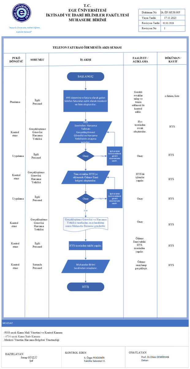 Muhasebe Birimi İş Akış Şemaları IA-IIF-MU-001-SATIN-ALMA IA-IIF-MUH-002-OLUM-YARDIMI IA-IIF-MUH-003-TELEFON-FATURASI-ODEMESI IA-IIF-MUH-004-AVANS-ISLEMLERI IA-IIF-MUH-005-ODENEK-AKTARMA